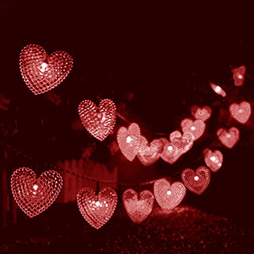 KINGCOO Catene Luminose Esterne, Impermeabile 20ft 30LED Amore Cuore Natale Solare Stellato Decorativo Luci Stringa con 8 modalità per Giardino Nozze Festa Terrazza Illuminazione (Rosso)
