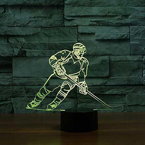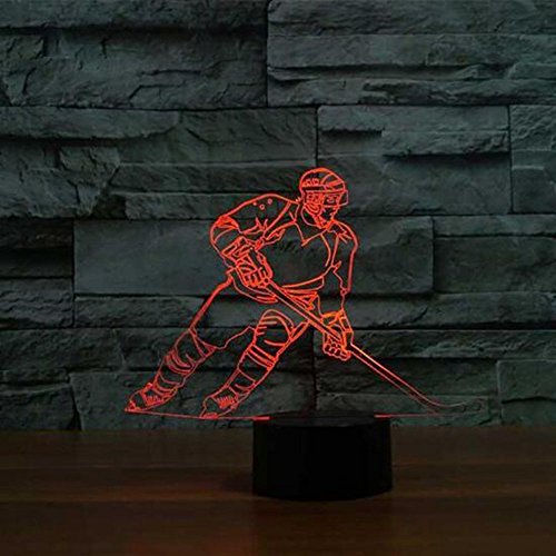 KINGCOO 3D illusione Lampada Luce Notturna, Lampada da Tavolo 7 Colori Acrilico USB per Comodino Bambini Cameretta Festa Decorazione (Hockey)