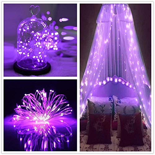 KINGCOO 2 Pezzi Luci a Corde di Rame Solare, 33ft 100LED Stringa Luci Fatate Solari Impermeabile Decorative Catena Luminosa 8Modalità per Esterni Giardino Festa Matrimonio Natalizia (Viola)