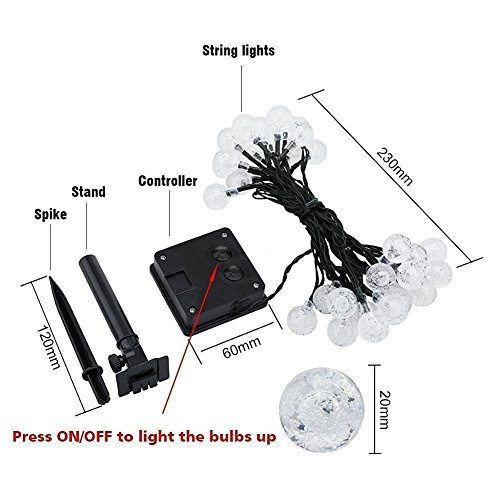 DIMENSIONI DEL PRODOTTO: cavo da 5 piedi e cavo da 20 piedi con 30 bolle globesche. Otto tipi di modalità di lavoro rendono l'ambiente fuori dall'ordinario. È un ideale per decorare il tuo passaggio, giardino, patio, festa, ecc.