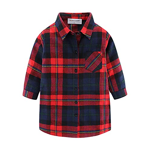 Mud Kingdom Bambina Piccola Camicie a Maniche Lunghe Pocket Classic Flanella Top Navy Blue Casual 3 Anni