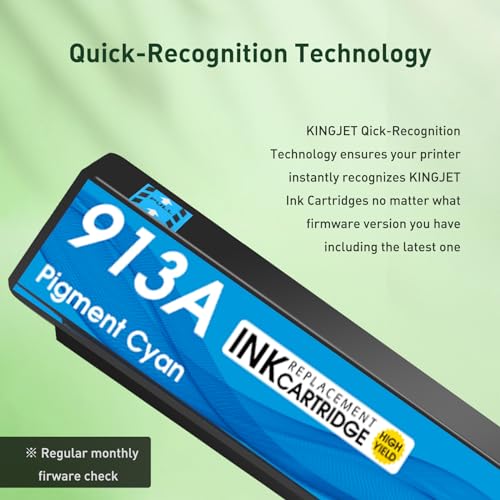 【KINGJET 913A CARTUCCE INCHIOSTRO MULTIPACK】【Chip più recente】Chip aggiornato nell'ottobre 2022! Le cartucce d'inchiostro Kingjet 913A possono funzionare senza problemi con il firmware più recente! 【Colore vero】L'inchiostro a base di tintura di qualità offre colori vivaci, stampa chiara e liscia per tutte le tue foto e documenti importanti. 【Alta resa delle pagine】Risparmia sulle cartucce d'inchiostro Kingjet XL. Stampa di più per meno!