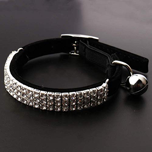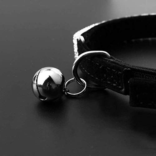 Kingkindsun -2PCS Collare per Gatti in Morbido Velluto, Design con Diamanti Bling con Campane, 11 Pollici per Gatti e Cani di Piccola Taglia(Nero + Rosso)