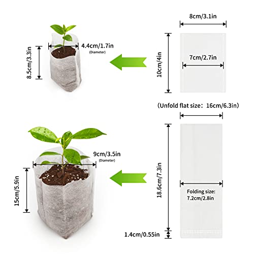 KINGLAKE 200 Pezzi Tessuto Non Tessuto Plant Seedling Sacchetti biodegradabili Grow Allevamento Borse (16 x 20 cm + 8 x 10 cm)