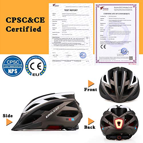 KINGLEAD Casco da Bici da Uomo e Donna con Luce StVZO LED USB Ricaricabile Casco da Bici MTB con Visiera Casco da Mountain Bike Regolabile Casco da Ciclismo Casco da Bici da Strada per Adulti 57-62cm