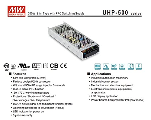 KingLed - Mean Well Alimentatore AC/DC Modello UHP-500-24 da 500W 24V Trasformatore Switching Non Impermeabile IP20 Per Prodotti a Led Meanwell Serie UHP cod. 5173