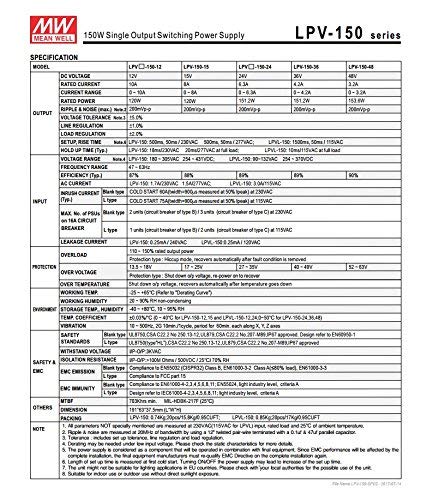 KingLed - Alimentatore Impermeabile IP67 Modello MeanWell LPV-150-24 Potenza 151,2W DC 24V Trasformatore Mean Well per Led