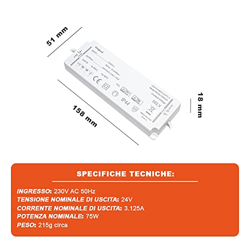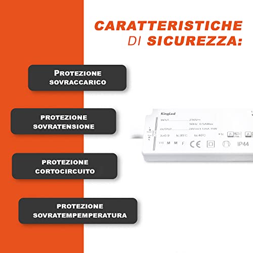 Kingled - Alimentatore Ultra Slim 24V 75W 3.12A IP44 - Trasformatore per Mobili - Driver per Strisce Led
