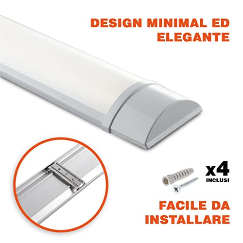 Il design di questa plafoniera Led è minimal ed elegante, e grazie alle staffe fornite è davvero facile e veloce da installare (con viti e tasselli inclusi). L'elevata qualità dei materiali permette di emettere luce istantanea senza sfarfallio.