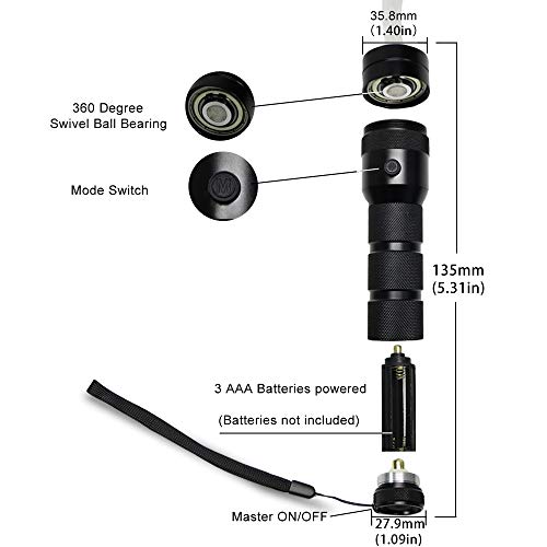 【1 tasto di commutazione】Un pulsante può cambiare i colori e le diverse modalità che si desidera a piacimento. Inoltre, il corpo della lampada adotta uno stile cilindrico, che può fornire una posizione ideale di posizionamento della mano e prevenire lo scivolamento e la caduta.