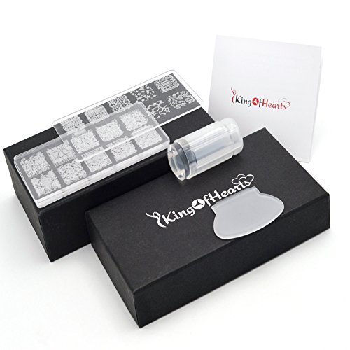 KingOfHearts Acrilico Nail Art Stamping Kit, Manicure Stamping Comprende 4 Piatti Stamping Con Diversi Modelli, Trasferimento Delle Immagini Stamper e Raschietto Per Tutti Art Nail Design e Decorazioni