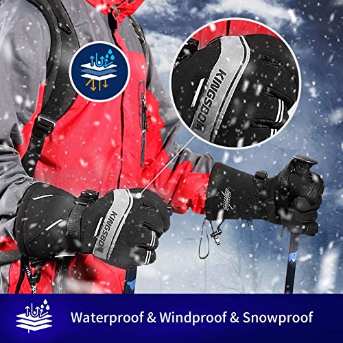 Kingsbom - Guanti impermeabili da sci e neve, 3 m, Thinsulate invernali caldi touch screen, per uomo e donna (grande)