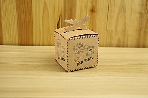 Kingsley 50pz Bomboniere Vintage Carta Kraft Candy scatole Regalo Scatole Cubo Portaconfetti Segnaposto AIRMAIL Aereo Tema Viaggio Mondo