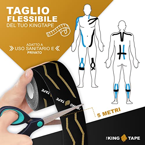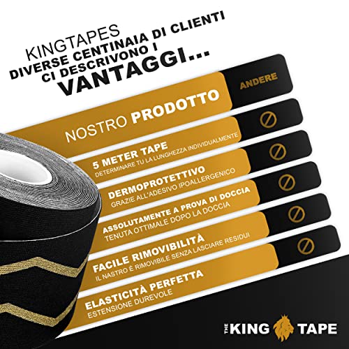 THE KINGTAPE Kinesiotapes (5cmx5m) comodo da indossare | heavy duty | sensitive skin | elastic & waterproof - Kinesiology Tape | Physio Tape | Boobstape | Tape for Sports & Fitness