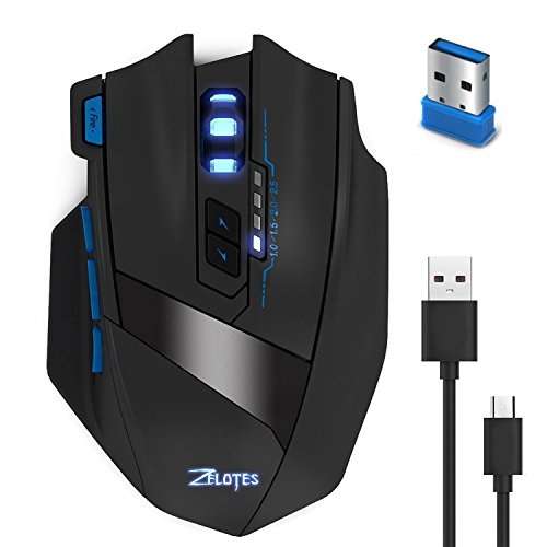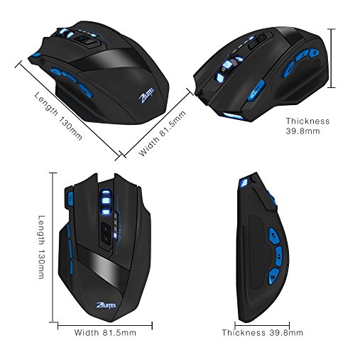 Kingtop Mouse Wireless 2.4G Gaming Mouse Ottico Senza Fili da 2500 DPI 4 Livelli Regolabili 9 Tasti per PC Gaming Computer Laptop
