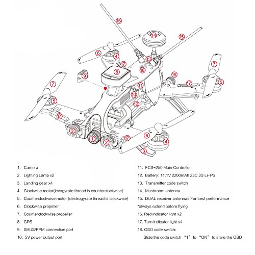 5.8G Trasmissione di immagini in tempo reale -- si può godere l'emozionante volo di prima vista persona. E i dati OSD possono mostrare la condizione di tensione della batteria, la situazione di volo, la direzione di coordinazione, l'altezza di volo e così via i dati che possono aiutarti a volare la sicurezza.