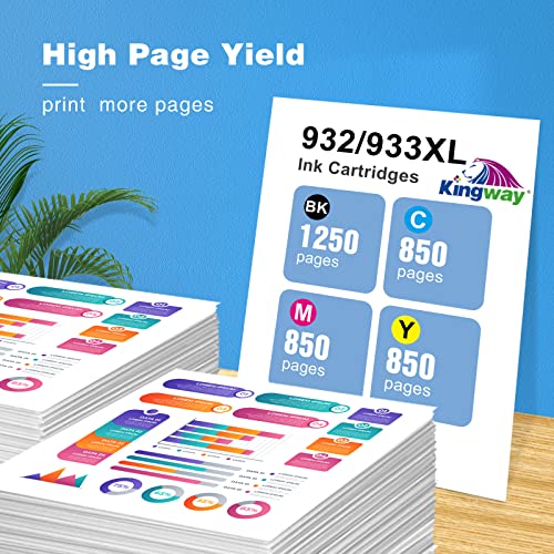 【Kingway vantaggio】1.932XL 933XL Cartucce utilizzo Gli ultimi chip aggiornati assicurano un'elevata compatibilità, progettati per funzionare la prima volta e ogni volta. 2.Stampa colori vivaci, testo nitido e nitido, documenti nitidi e puliti che durano per decenni. 3.Elevata resa della pagina per ridurre i costi di stampa, ideale per l'uso quotidiano a una frazione dei prezzi originali
