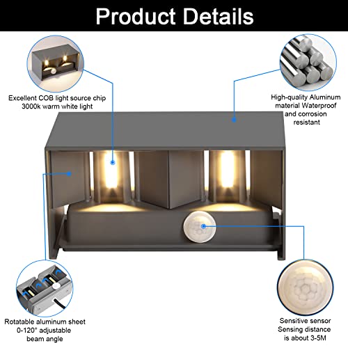 【Alta qualità】: L'intera lampada da parete è realizzata in alluminio di alta qualità e l'aspetto sembra pieno di tridimensionalità. Sorgente luminosa COB LED di alta qualità, molto risparmio energetico, tempo di utilizzo fino a 50.000 ore.