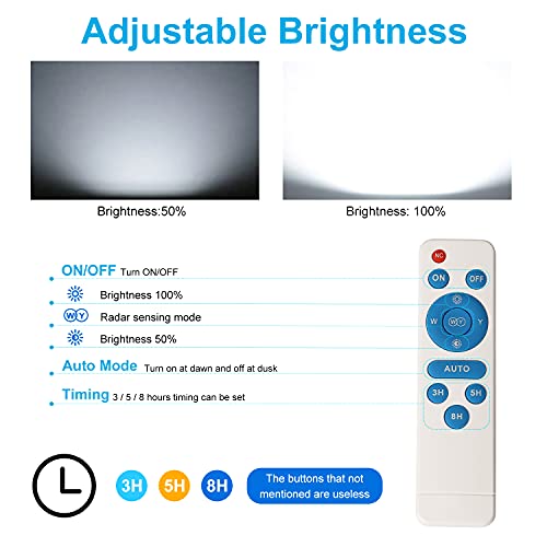 ☀【Funzione di rilevamento radar】: Il faretto ha un rilevatore radar incorporato. Dopo aver utilizzato il telecomando per attivare la modalità radar, continuerà a mantenere un'illuminazione a bassa luminosità. Quando qualcuno passa, si accenderà con la massima luminosità al 100%. Dopo che la persona se ne andrà, entrerà di nuovo in illuminazione a bassa luminosità . Le luci possono risparmiare energia in modo molto efficace.
