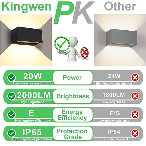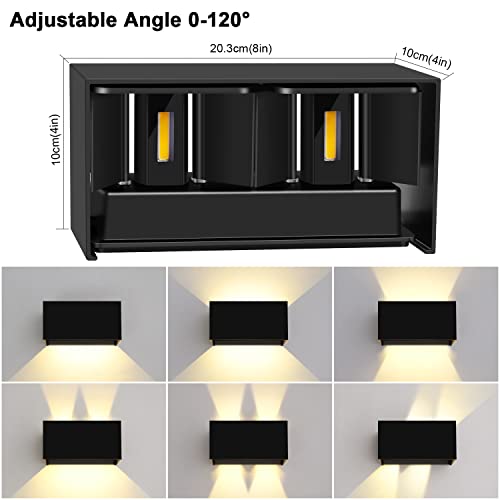 Kingwen 20W Applique da Parete Interno/Esterno 2 Pezzi Applique da Esterno 3000K Bianco Caldo Lampade da Parete Angolo del Fascio Regolabile Applique IP65 Impermeabile Nero Aapplique Esterno