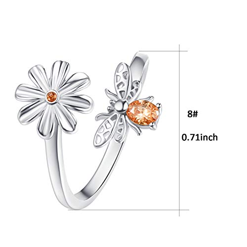 Kingwhyte, anello a forma di api e margherita, in argento Sterling con incisione a forma di farfalla, regolabile, per donne e ragazze e Argento, 58 (18.5), cod. KINGWHYTE