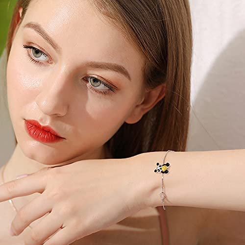 KINGWHYTE Braccialetto in argento Sterling 925 con gufo, girasole, panda /farfalla/elefante, idea regalo per donne, mamme, ragazze e figlie, 7 inches, Argento sterling