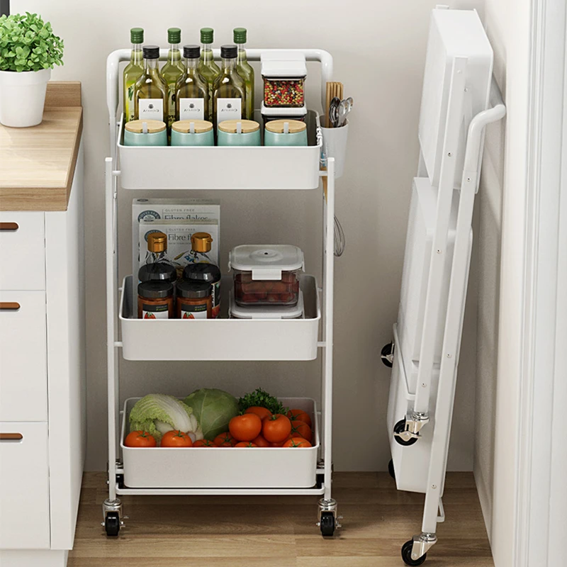 KingYee Kitchen trolley 3Tier utility Cart multi-function trolley storage trolley kitchen foldable trolley Rolling Metal trolley