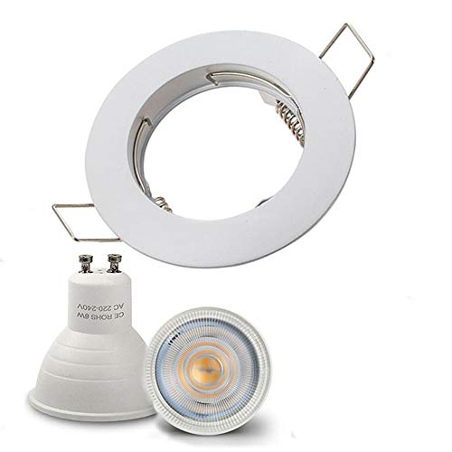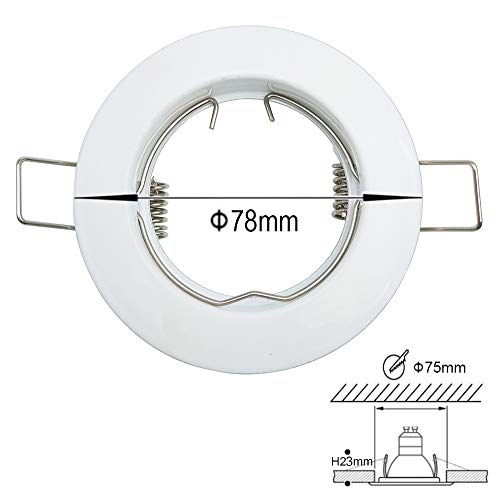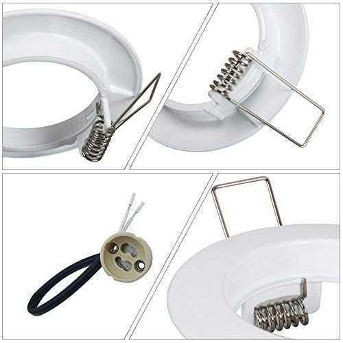 KingYH 6 Pezzi Tondo Portafaretto da Incasso GU10 Cornici da Incasso Non Orientabile con portalampada per Faretto da Soffitto GU10 e MR16 Lampada Alogena Colore Bianco Lucido