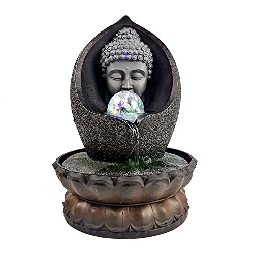 KinHall Fontana d'acqua Buddha statua fatta a mano in resina Buddha statua acqua corrente LED fontana interna ornamenti Waterscape Feng Shui Home Office Ornamento (A)