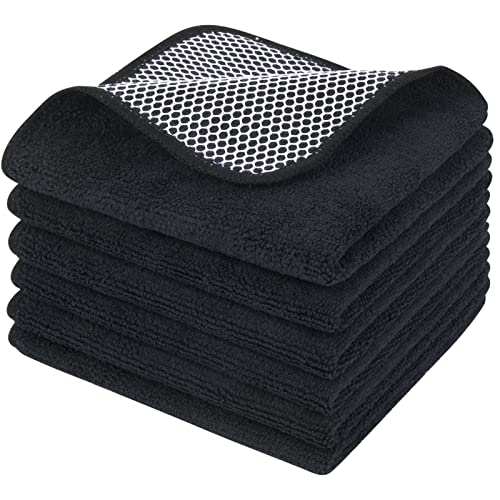 KinHwa Panni in Microfibra Strofinaccio Cucina Panni di Pulizia Sono Panni Multiuso Adatti per la Pulizia di casa, Cucina, Bagno e Interno di Automobile (nerox6, 30cmx30cm)