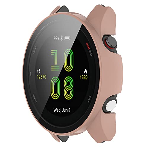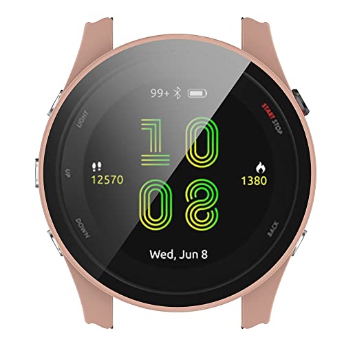 KINKUUN Custodie case in Vetro Temperato Compatibili con Garmin Forerunner 255 Protettiva Cover con Vetro Temperato Protezione Schermo Anti-Graffio.(rosa)