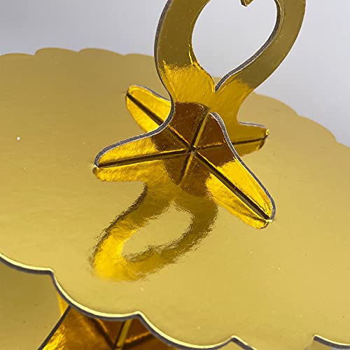 KINMRIS Confezione da 4 supporti per cupcake in cartone, a 3 ripiani, con bordo in pizzo, supporto per cupcake in cartone dorato, accessori per feste di compleanno, decorazioni per matrimoni, baby
