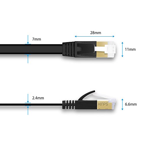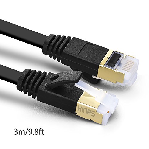 Kinps 3M CAT 7 RJ45 Flat Ethernet Patch Cable S/STP(Double Shielded Twisted Pair) 10Gbps 600MHz Ethernet LAN Network Cable