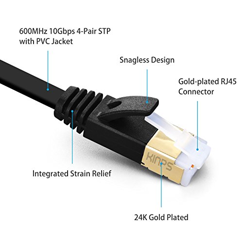 Kinps 1M CAT 7 RJ45 Flat Ethernet Patch Cable S/STP(Double Shielded Twisted Pair) 10Gbps 600MHz Ethernet LAN Network Cable