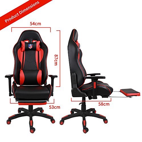 Kinsal Sedia Gaming ergonomica da gioco grande con schienale alto, sedia da ufficio girevole Sedia da gioco PC con poggiatesta extra morbido, supporto lombare e poggiapiedi retrattile (rosso/nero)