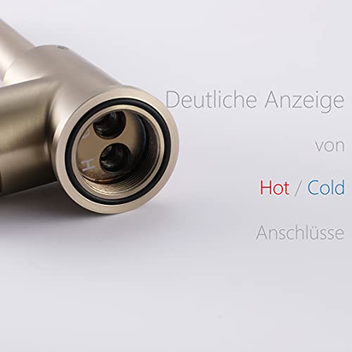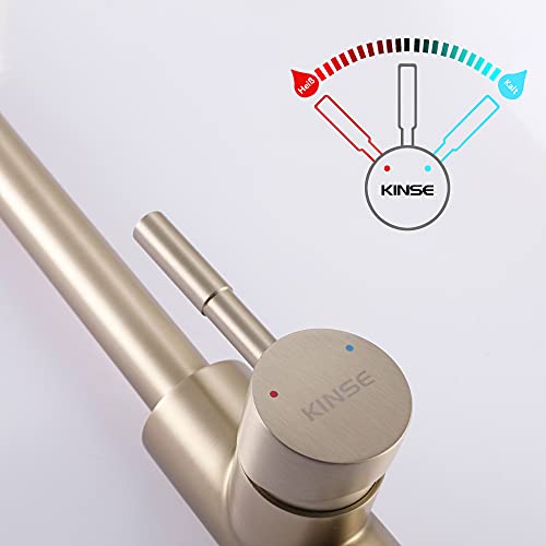 KINSE Rubinetto Lavello Cucina in Acciaio Inox, Miscelatore Monocomando, girevole a 360°, Oro