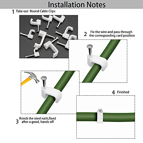 【Materiale Di Alta Qualità】I fermacavi sono realizzati in materiale PE premium addensato, antiacido, anticorrosivo, buon isolamento con chiodi temprati per fissare il cavo a legno, cemento, gesso, mattoni, ecc.