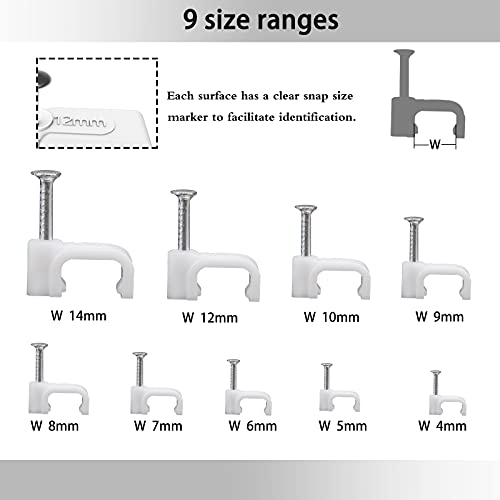 【9 Diverse Dimensioni】Le clip quadrate per cavi di dimensioni 4 mm, 5 mm, 6 mm, 7 mm, 8 mm, 9 mm, 10 mm, 12 mm, 14 mm, si prega di scegliere la clip di dimensioni appropriate per cavi o cavi di diametro diverso.