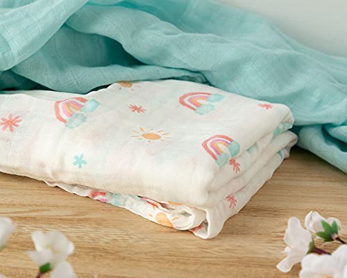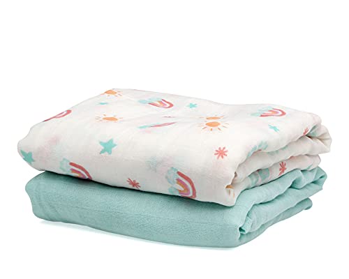 Confezione da 2 mussole - un design liscio e uno con arcobaleno.