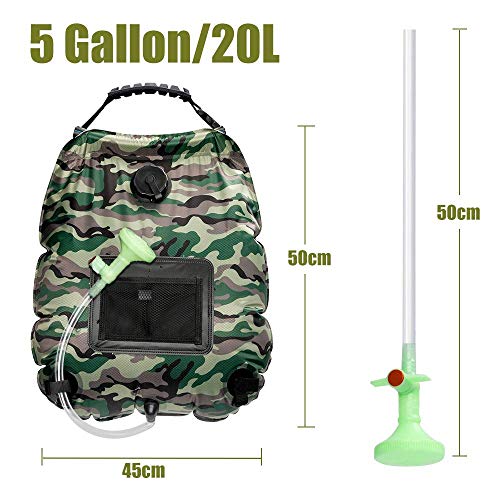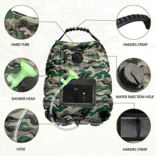 KIPIDA - Borsa da doccia a energia solare, 20 l, da campeggio, con soffione doccia e on/off, portatile, a energia solare, per esterni, escursionismo, arrampicata, estate, doccia