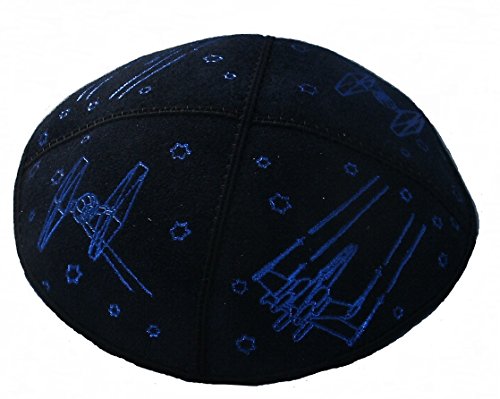 Kippah copricapo ebraico in vera pelle scamosciata, per bambini, con motivo Star Wars, colore: blu navy
