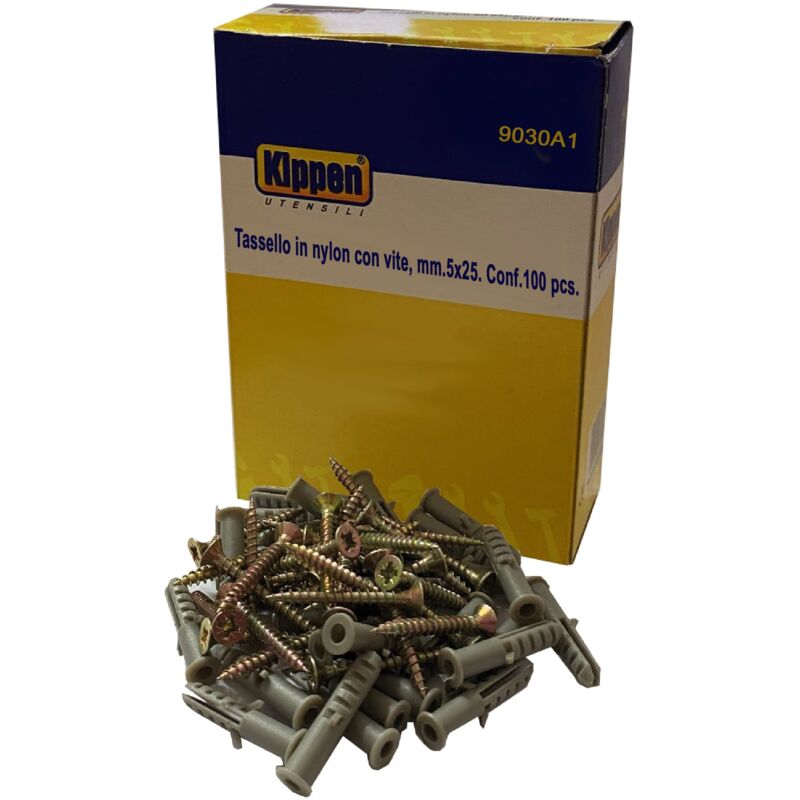 Confezione da 100 Tasselli in Nylon con Viti. Misura 5x25 mm.