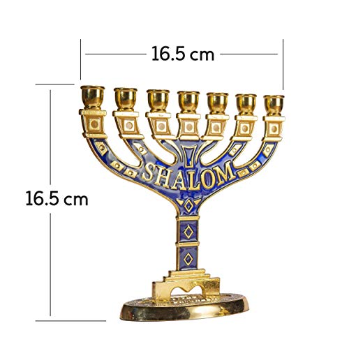 JL Kippha's Gold Gerusalemme Portacandele decorativo Judaica 7 ramo Shalom Israel Menorah simbolo ebraico 16 x 16 cm