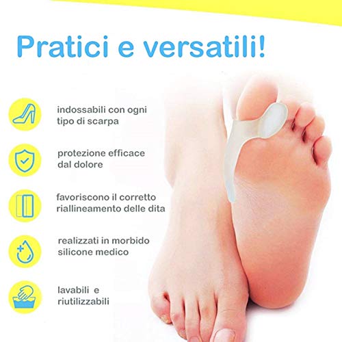 KIRALOVE Correttore alluce valgo - gel - silicone medico - idea regalo originale - divaricatore - antisfregamento - separatore dita alleviare il dolore - confezione da 6 pezzi bianco - ottima qualita