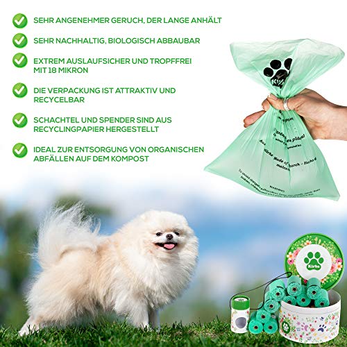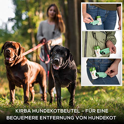 Kirba - Sacchetti per escrementi per cani, particolarmente resistenti agli strappi e biodegradabili, con un piacevole profumo e un dispenser unico in cartone (design floreale)