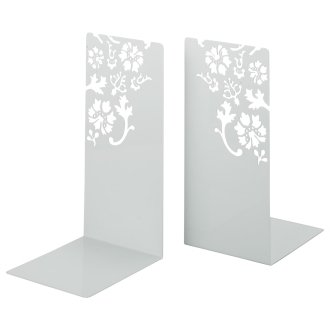 Kirie - Coppia di fermalibri in metallo bianco con fiore ritaglio modello, altezza 25,4 cm
