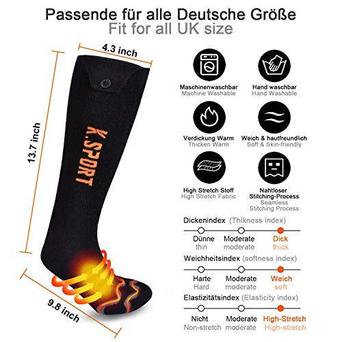 KirinSport Calzini Riscaldati, Batteria Ricaricabile Potenziata da 5000mAh Uomo Donna Calzini Riscaldati per Climi Freddi, Sci/Caccia/Pesca/Equitazione/Ciclismo/Motocicletta/Campeggio