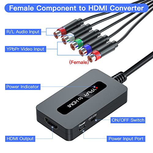 Kirolle Cavo Convertitore da Femmina Component a HDMI per Console di Gioco PS2/NGC/Xbox con Componente Maschio da Visualizzare su HDTV, Convertitore 1080P da YPbPr a HDMI, Convertitore da RGB a HDMI