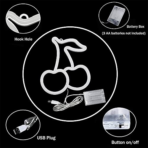 Kirsche Neon Segni, Carino Frutta Luci Neon per Wall Decor Batteria o USB Powered LED Segni luminosi per camera da letto, Nursery, Soggiorno, Bar, Partito, Verde Rosso