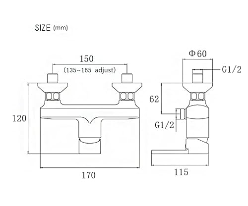 ♡ FACILE DA INSTALLARE = Uscita da 1/2", ingresso caldo e freddo da 1/2", adatto per il tuo bagno. Distanza tra connessione calda e fredda: 150 mm.
